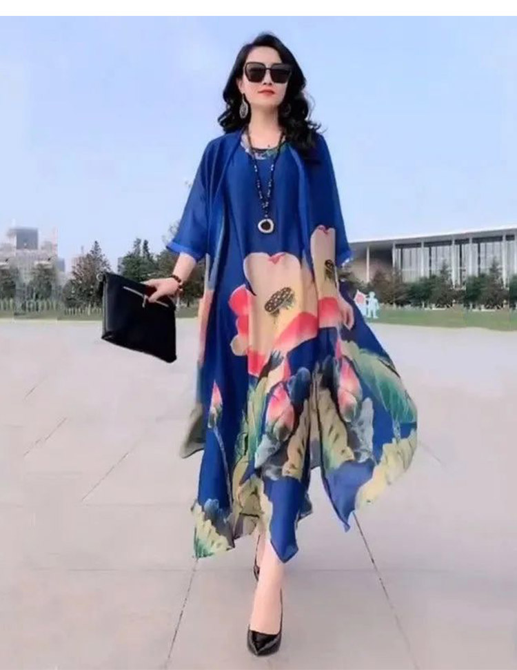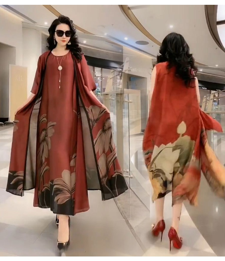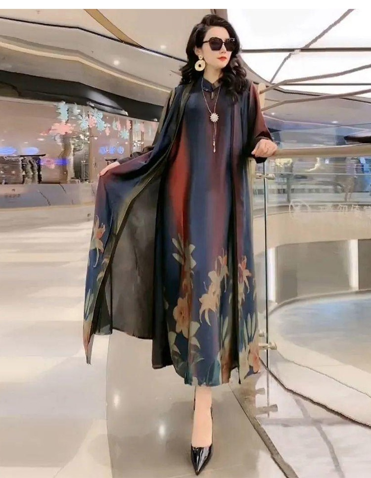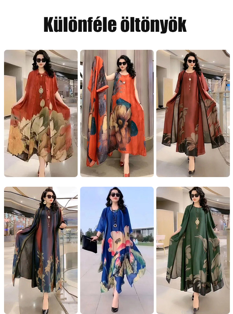 Selyem karcsúsító hosszú ruha kétrészes szett
